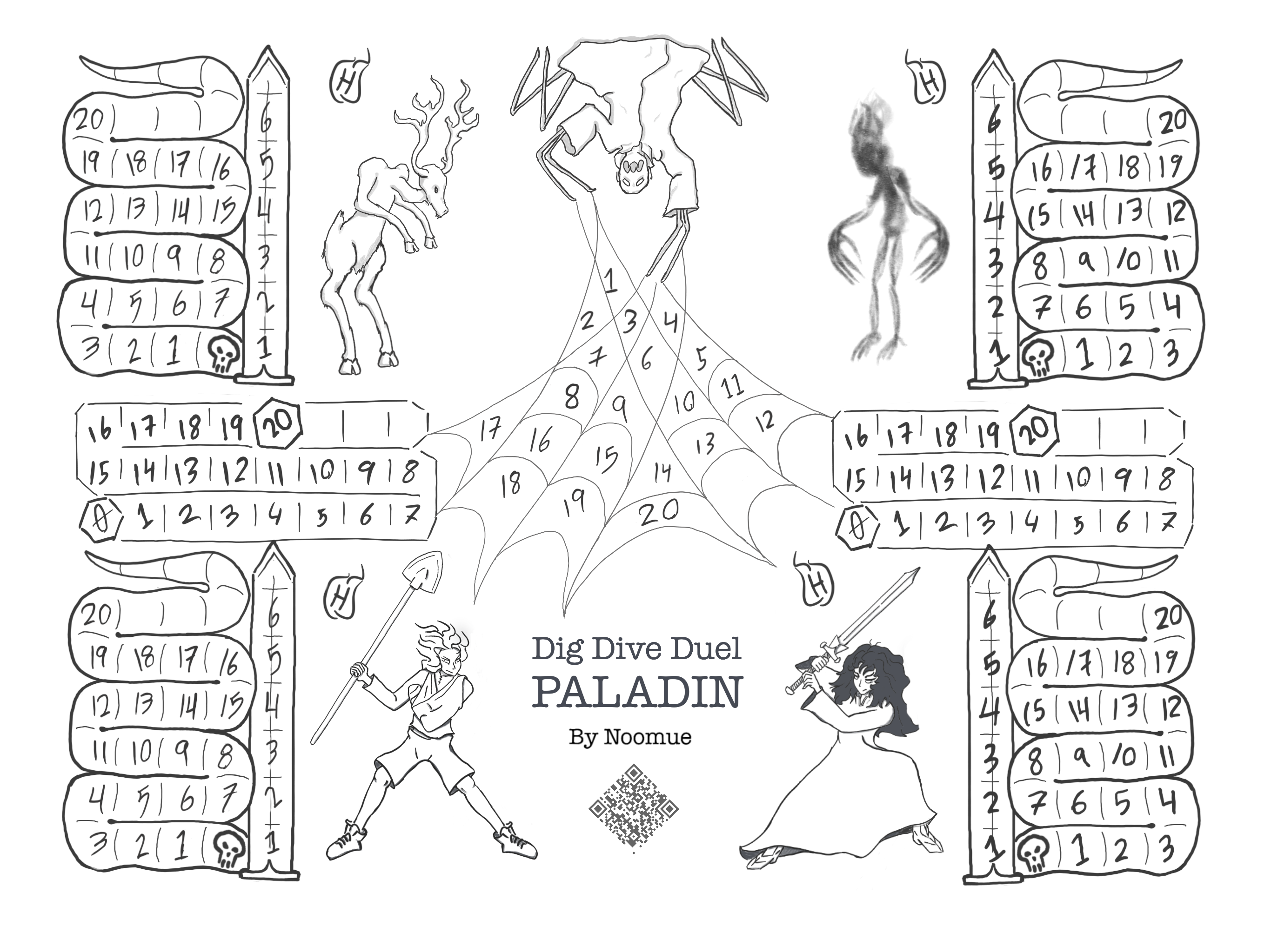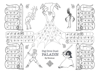 Dig Dive Duel - Paladin is a solo/duet roguelike battle adventure written by Noomue. A sequel to the popular Dig Dive Duel and you can get it at DriveThruRpg following the link: